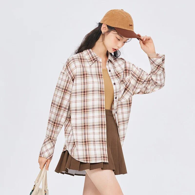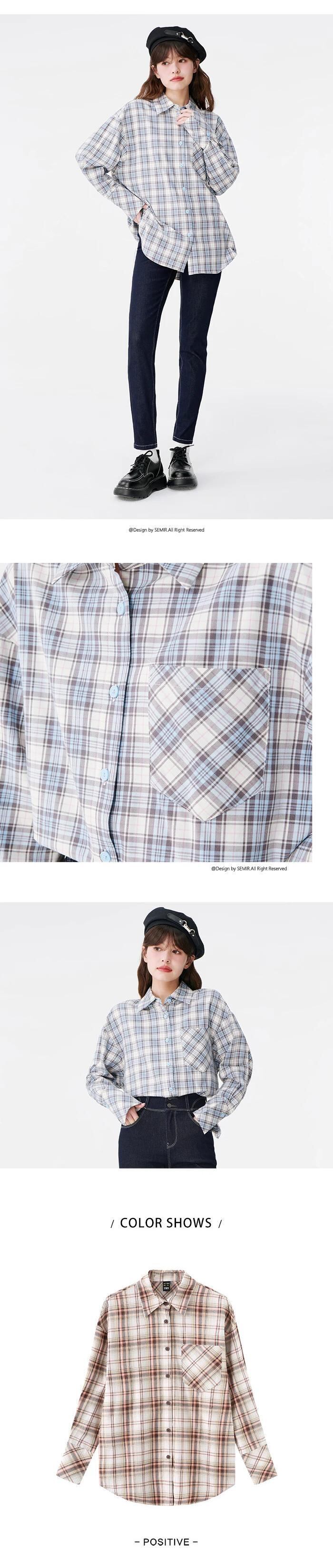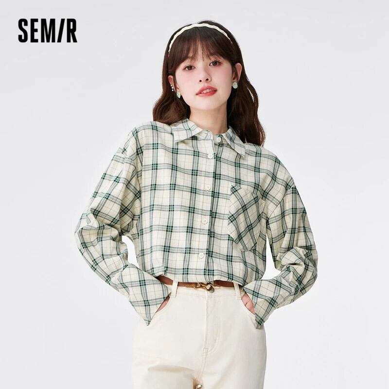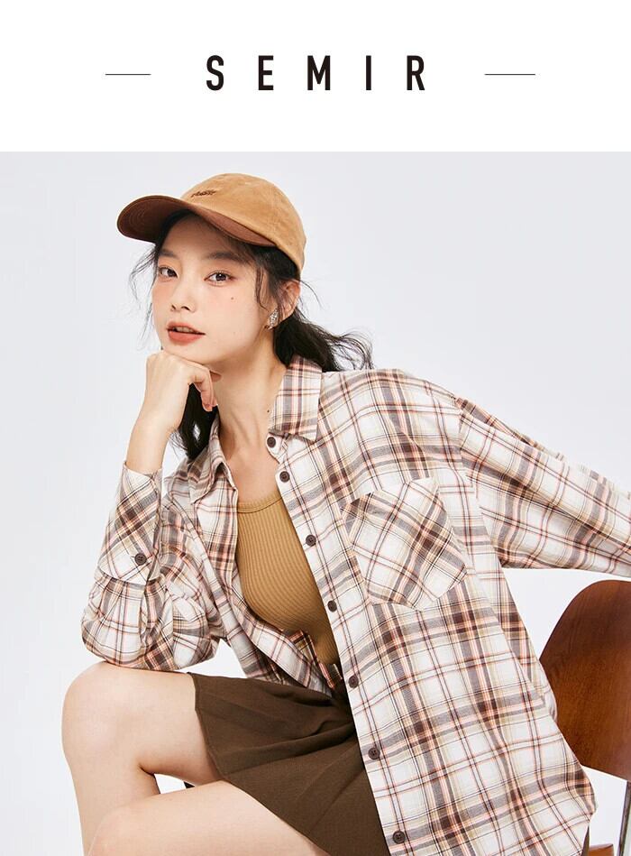 送料無料 Semir 女性シャツ長袖シャツミッドレングスルーズ服トレンド秋レトロチェック柄シャツシャツ女性 ロング オータム 秋物 AE1212777715313893393