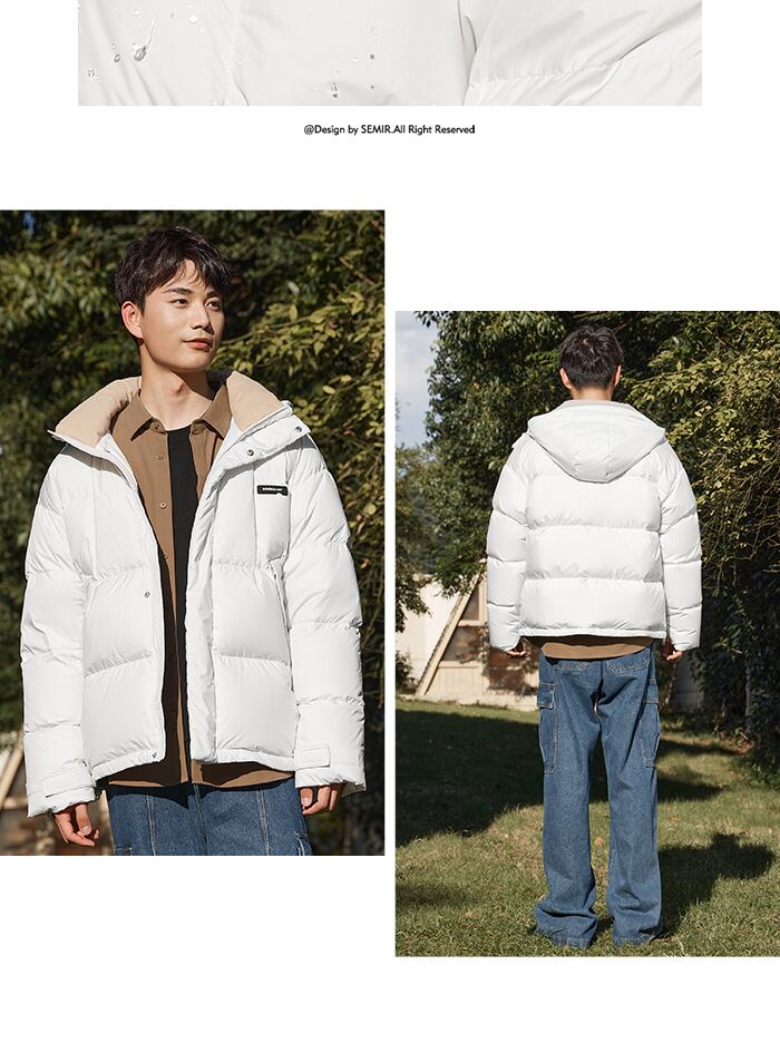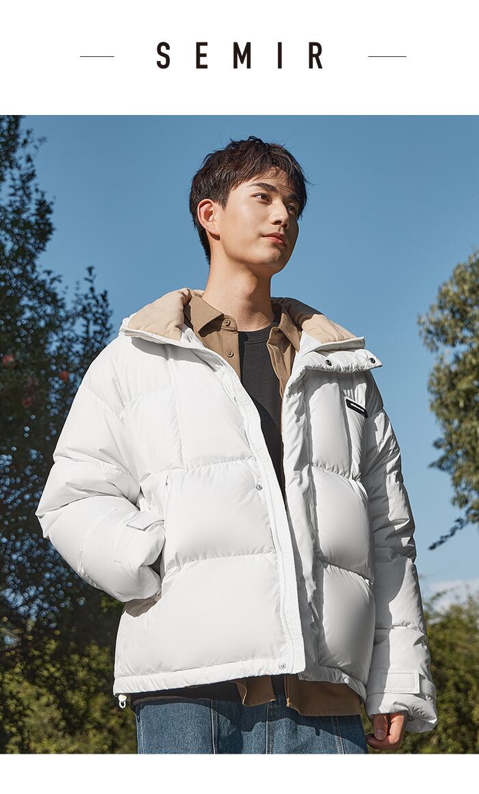 送料無料 Semir ダウンジャケット男性 2023 冬シンプルな無地 Comtable 暖かい通勤ジャケット ウィンター 冬物 ソリッドカラー AE1212777722314604587