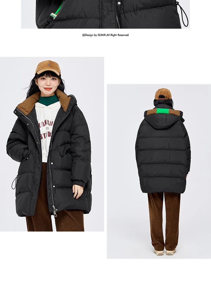 送料無料 Semir ダウンジャケット女性ミッドレングスシルエットコクーンコントラストカラーフード付き 2023 冬厚いジャケット ウィンター 冬物 AE1212777733945710561 | 女性の為の通販サイト-fashion navi