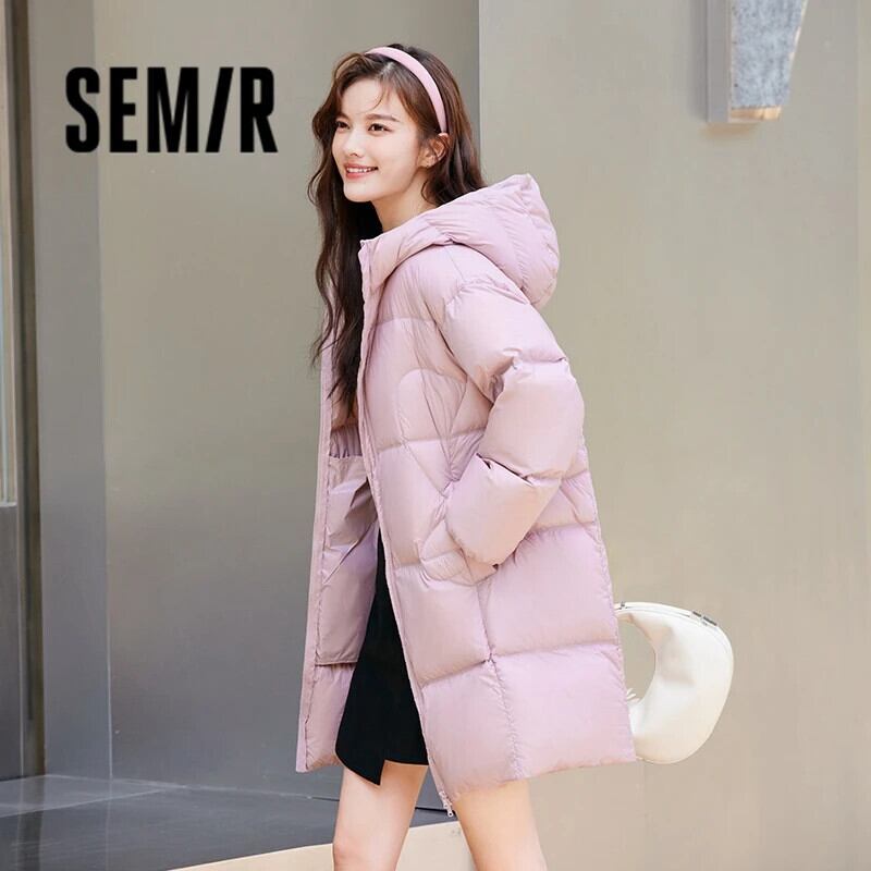 送料無料 Semir ダウンジャケット女性ロングフード付きライトジャケットランタン袖ルーズ 2023 冬の蝶甘いジャケット ランタンスリーブ 大人ガーリー スウィート キュート カジュアル ウィンター 冬物 AE1212777750107219095