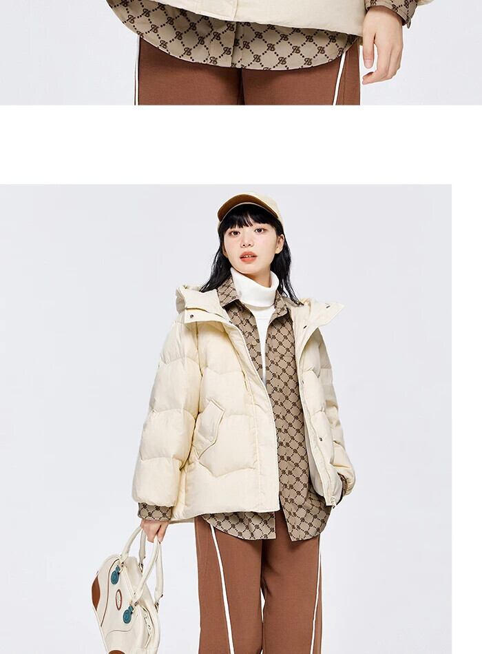 送料無料 Semir ダウンジャケット女性プリントレトロルーズ 2023 冬フード付き厚いダウンジャケット ウィンター 冬物 AE1212777734939907004