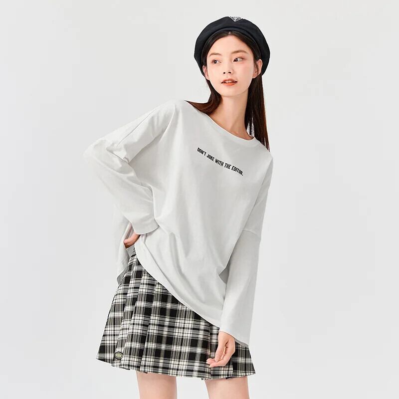 送料無料 Semir 長袖 Tシャツ女性綿オーバーサイズレター 2022 初秋ラウンドネック底入れ Tシャツシンプル ロング コットン オータム 秋物 Oネック AE1212777793583251962