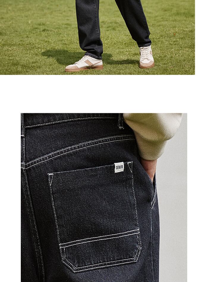 送料無料 Semir ジーンズ男性 2023 秋と冬レトロ洗浄熟成ルーズテーパードパンツ耐摩耗性パンツ レッド オータム 秋物 ウィンター 冬物 AE12127777636604246