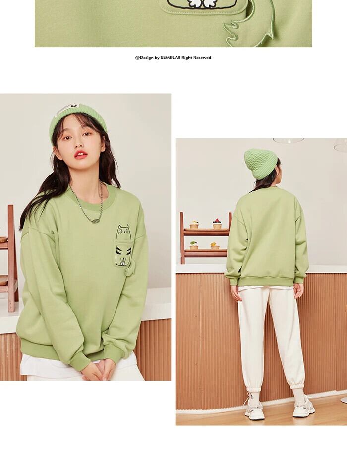 送料無料 SEMIR トレーナー女性スクラッチヘアオフショルダー 2021 冬特大パーカー猫ガールプルオーバー怠惰で遊び心 ウィンター 冬物 AE1212777750443476625