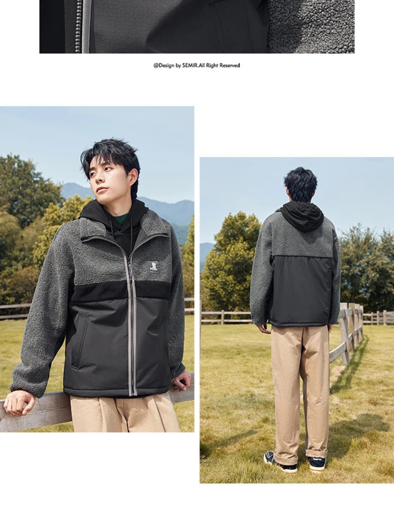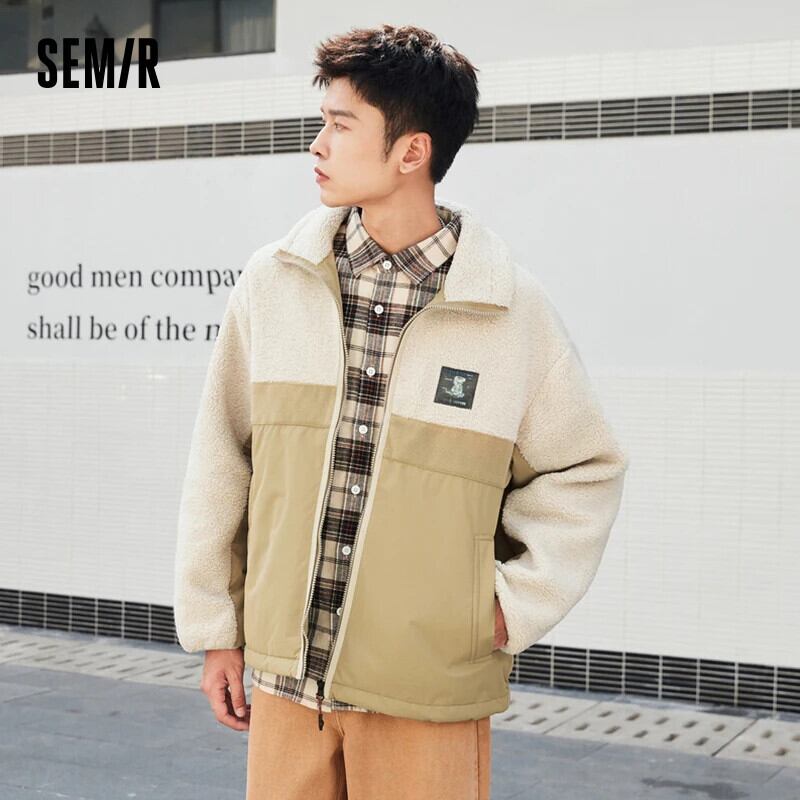 送料無料 Semir 2023 メンズジャケット冬トレンディルーズステッチ模造子羊ベルベットジャケットクールトップ男性 ウィンター 冬物 AE1212777724357869689