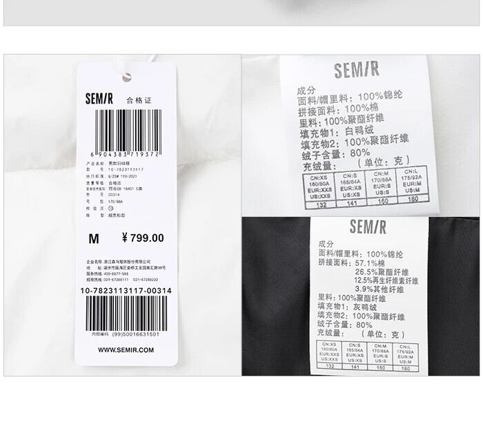 送料無料 Semir ダウンジャケット男性 2023 冬特大対応ツーピーストップ Comtable 暖かいジャケット ウィンター 冬物 AE1212777732414464583
