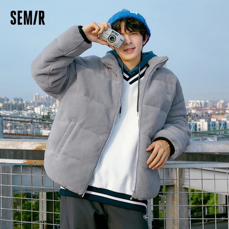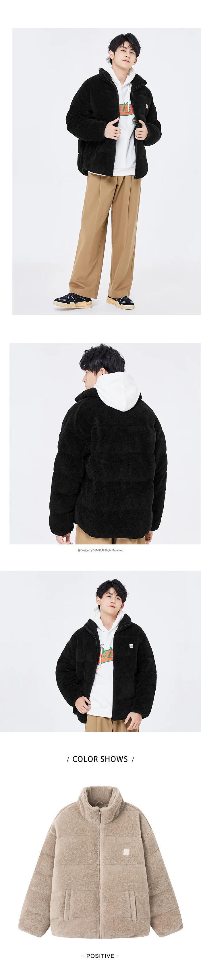送料無料 Semir 綿コートメンズルーズ厚い模造シェルパスタンドカラーオーバーサイズトレンディ 2023 冬コート コットン ウィンター 冬物 AE121277779474425148