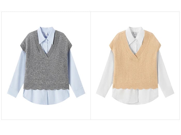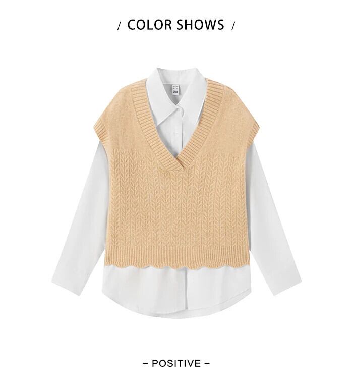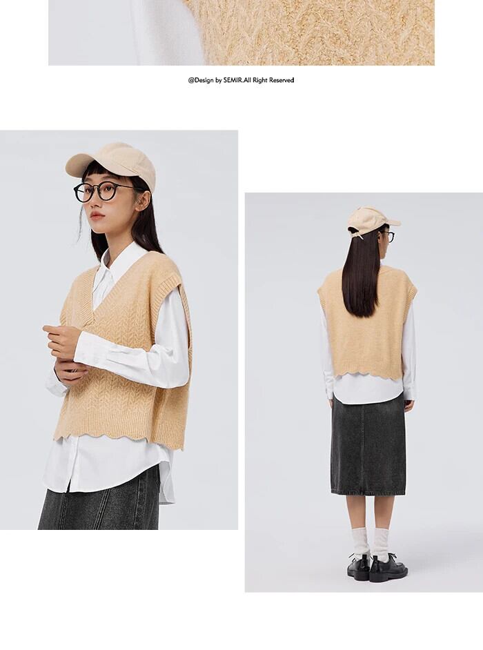 送料無料 Semir 2023 女性シャツ長袖シャツ春シンプルなオールマッチショート V ネックベストツーピース通勤ミッドレングスシャツ ロング スプリング 春物 Vネック AE1212777738464342836
