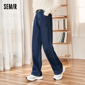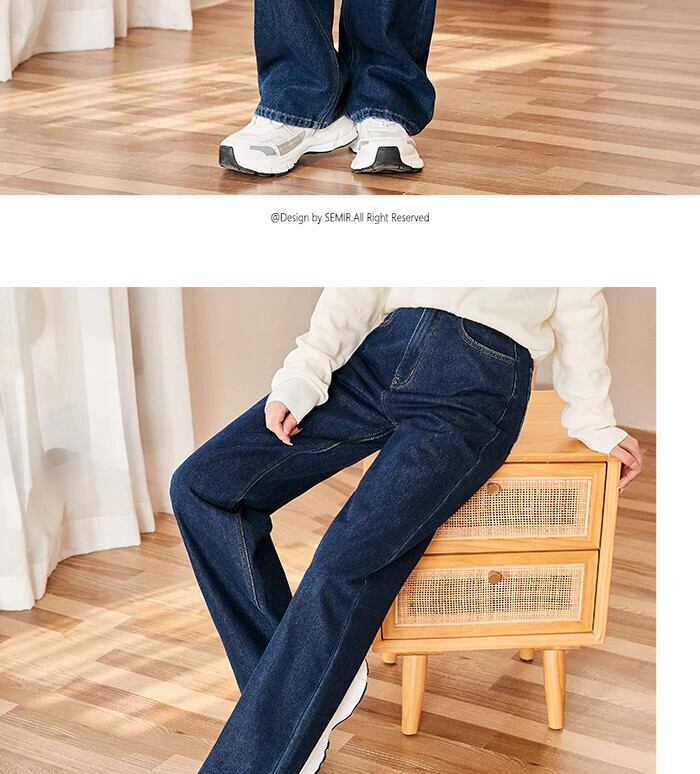 送料無料 Semir ジーンズ女性スプライシングワイドレッグパンツ脚の長さを表示 2022 冬レトロロングデミンパンツ ウィンター 冬物 ワイドパンツ AE1212777780087908002