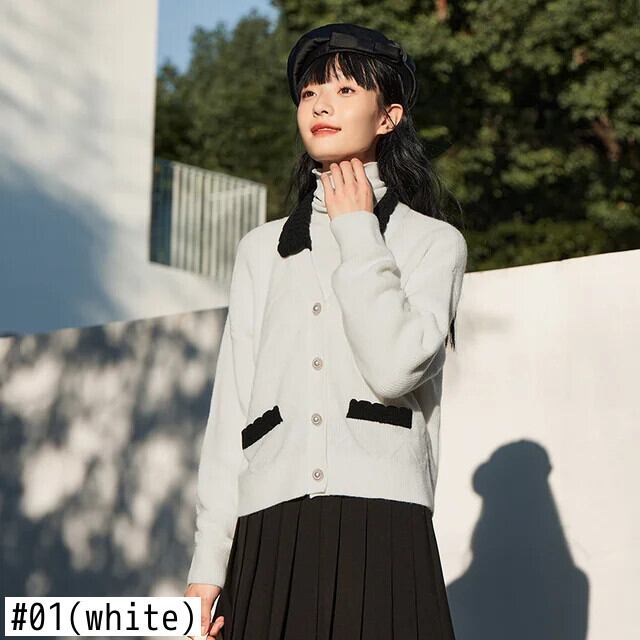 送料無料 Semir ニットカーディガン女性ケーブルトップ小 2023 冬ルーズ小さな香りのスタイルコントラストカラージャケット ウィンター 冬物 AE1212777728725778170