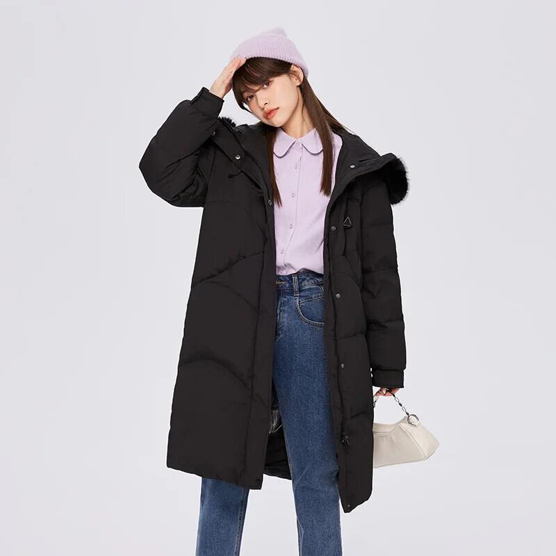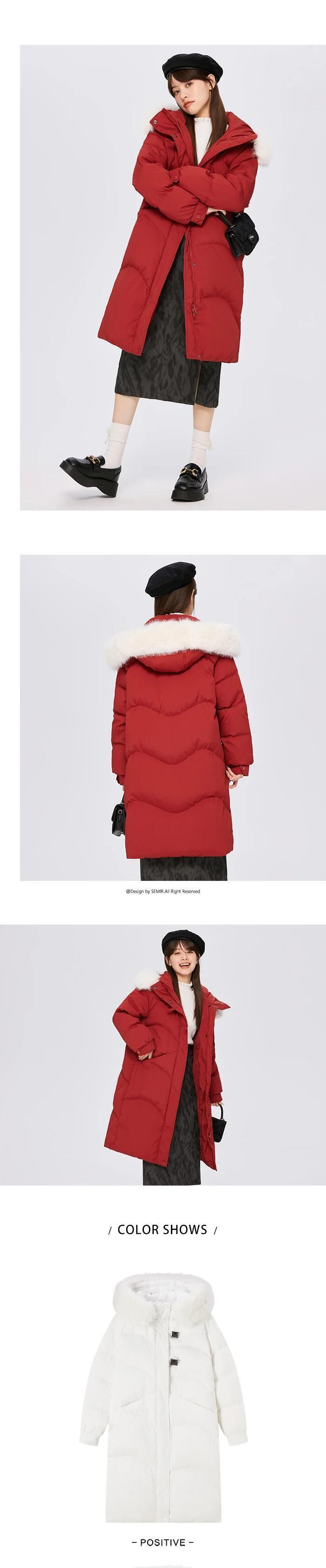 送料無料 Semir ロングダウンジャケット女性ビッグファー襟フード付き暖かいオールマッチ 2023 冬ルーズホーンボタンジャケット ウィンター 冬物 AE1212777763970719628