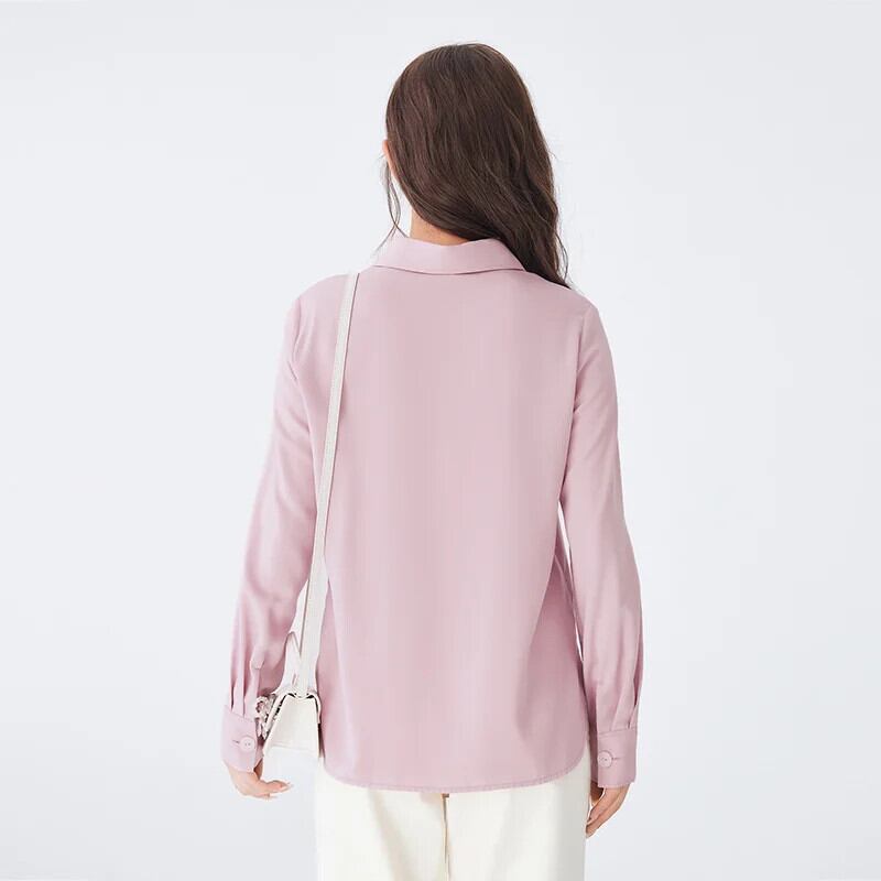 送料無料 Semir 女性シャツ長袖シャツ秋の尖った襟ベーシックイージーケア通勤無地トップオールマッチシャツ ロング オータム 秋物 ソリッドカラー AE1212777710479350640