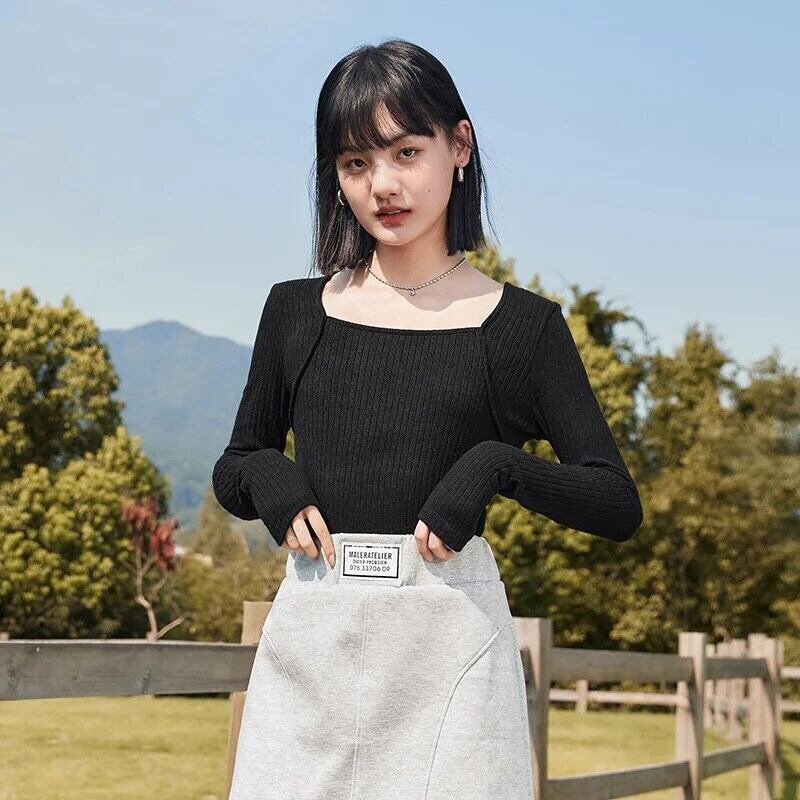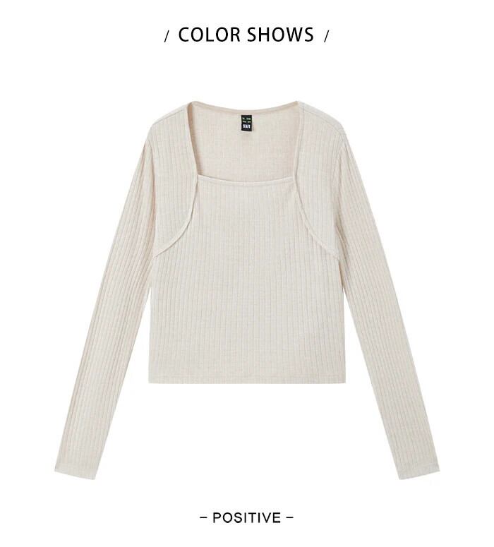 送料無料 Semir 長袖 Tシャツ女性ショートスクエアネック偽 2 2022 秋と冬スリムニット Tシャツ ロング オータム 秋物 ウィンター 冬物 スクウェア AE1212777778923934662