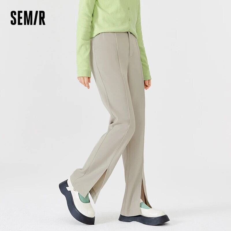 送料無料 Semir パンツ女性スプリットフレアパンツ高度なスリム 2022 春ドレープパンツ黒のスーツパンツ レッド ブラック スプリング 春物 AE1212777712082371902
