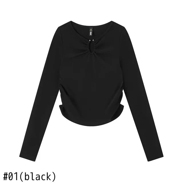 送料無料 Semir 長袖 Tシャツ女性ショートプリーツセンス 2022 秋スリムトップ Bm スタイル鎖骨 Tシャツ ロング オータム 秋物 AE1212777778837969989