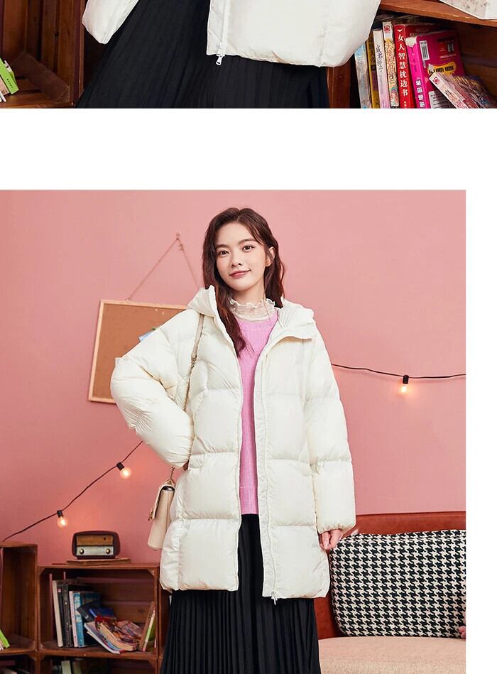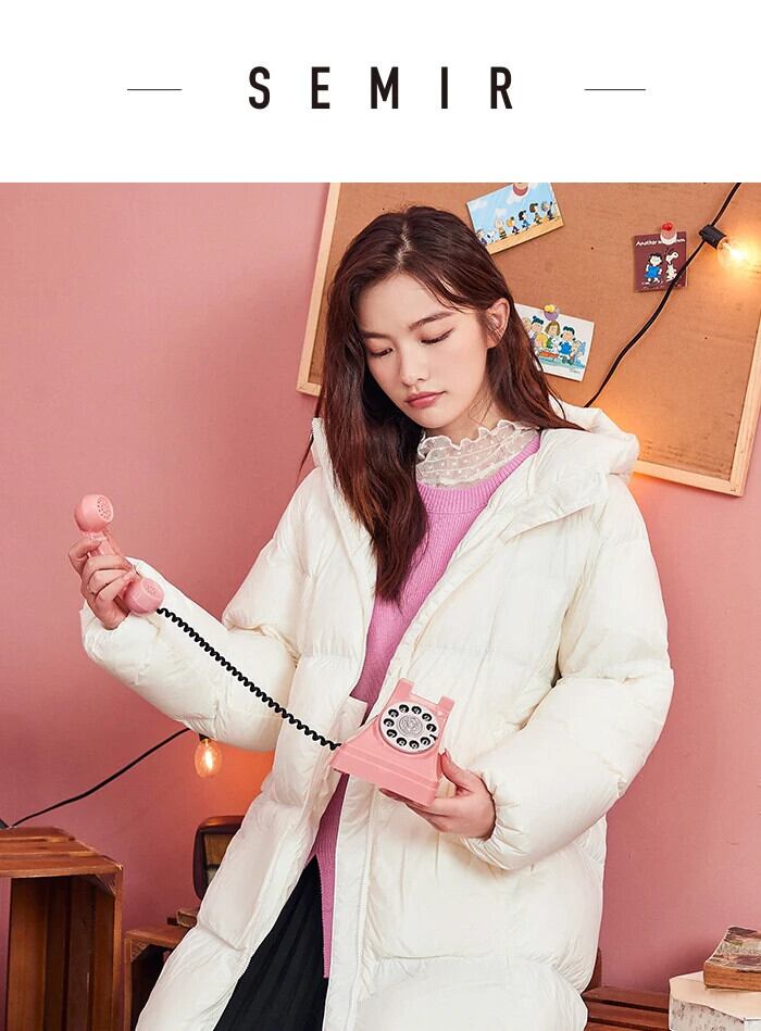 送料無料 Semir ダウンジャケット女性ミディアムロング軽量ジャケット 2023 冬甘いランタンスリーブルーズフード付きパンジャケット 大人ガーリー スウィート キュート カジュアル ウィンター 冬物 AE1212777792926161748