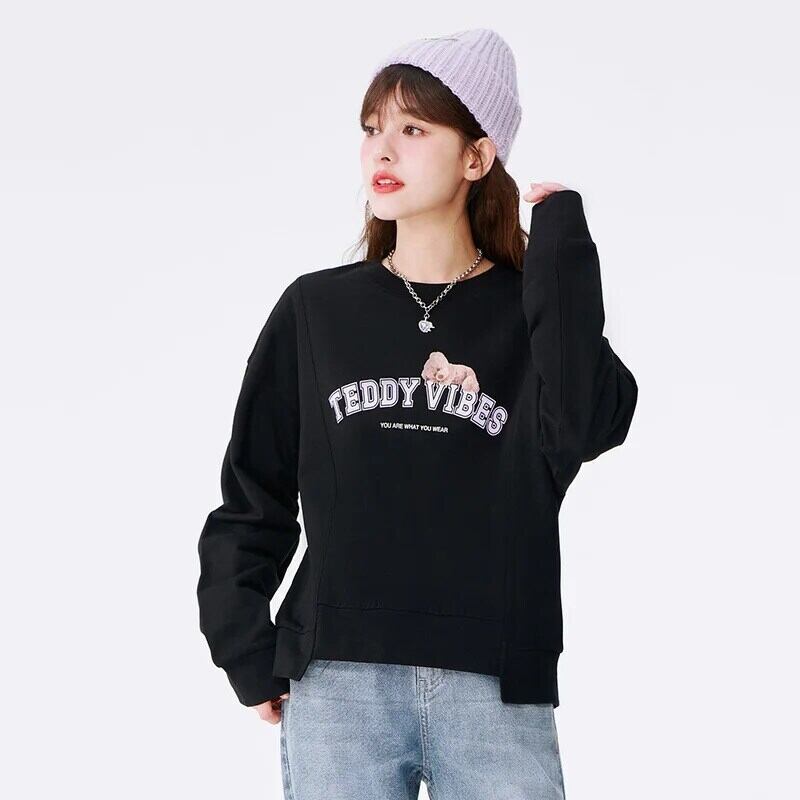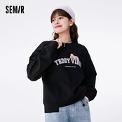 送料無料 Semir 女性 Tシャツ長袖秋スプライシング印刷服ルーズ手紙綿底 Tシャツ女性 ロング コットン オータム 秋物 AE1212777712462818872