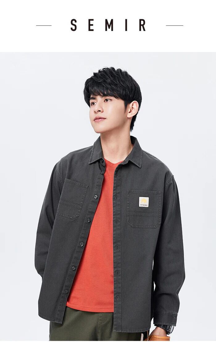 送料無料 Semir 男性シャツ長袖シャツ秋オーバーサイズツーリングウォッシュシャツトレンディな純粋な綿のアウタートップ男性 ロング コットン オータム 秋物 ピュア AE1212777746490672817