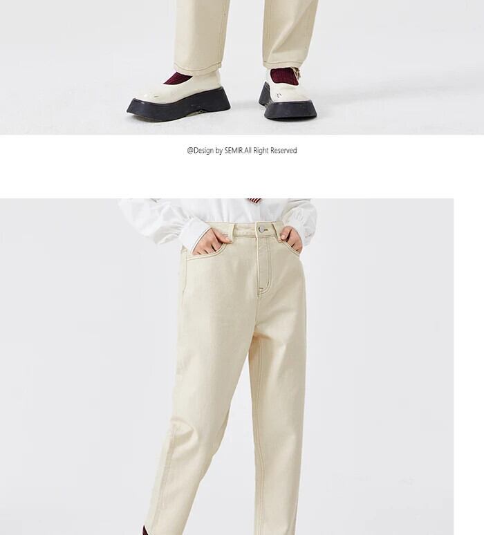 送料無料 Semir ジーンズ女性オールドレトロテーパードパンツ 2022 春綿ルーズストレートスリムロングパンツ レッド コットン スプリング 春物 AE1212777775716139950