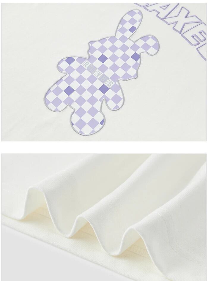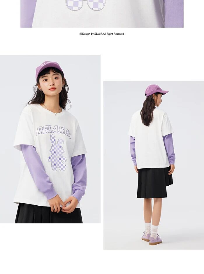 送料無料 Semir 女性 Tシャツ長袖秋ミッドレングスフェイクツーピーストップルーズコットン市松模様ウサギプルオーバー女性 ロング オータム 秋物 AE1212777759238610075