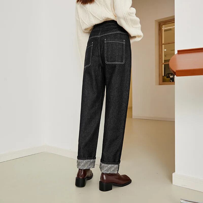 送料無料 Semir ジーンズ女性ルーズ 2023 冬ソフト裾黒ストレートパンツ ブラック ウィンター 冬物 AE1212777737185420984