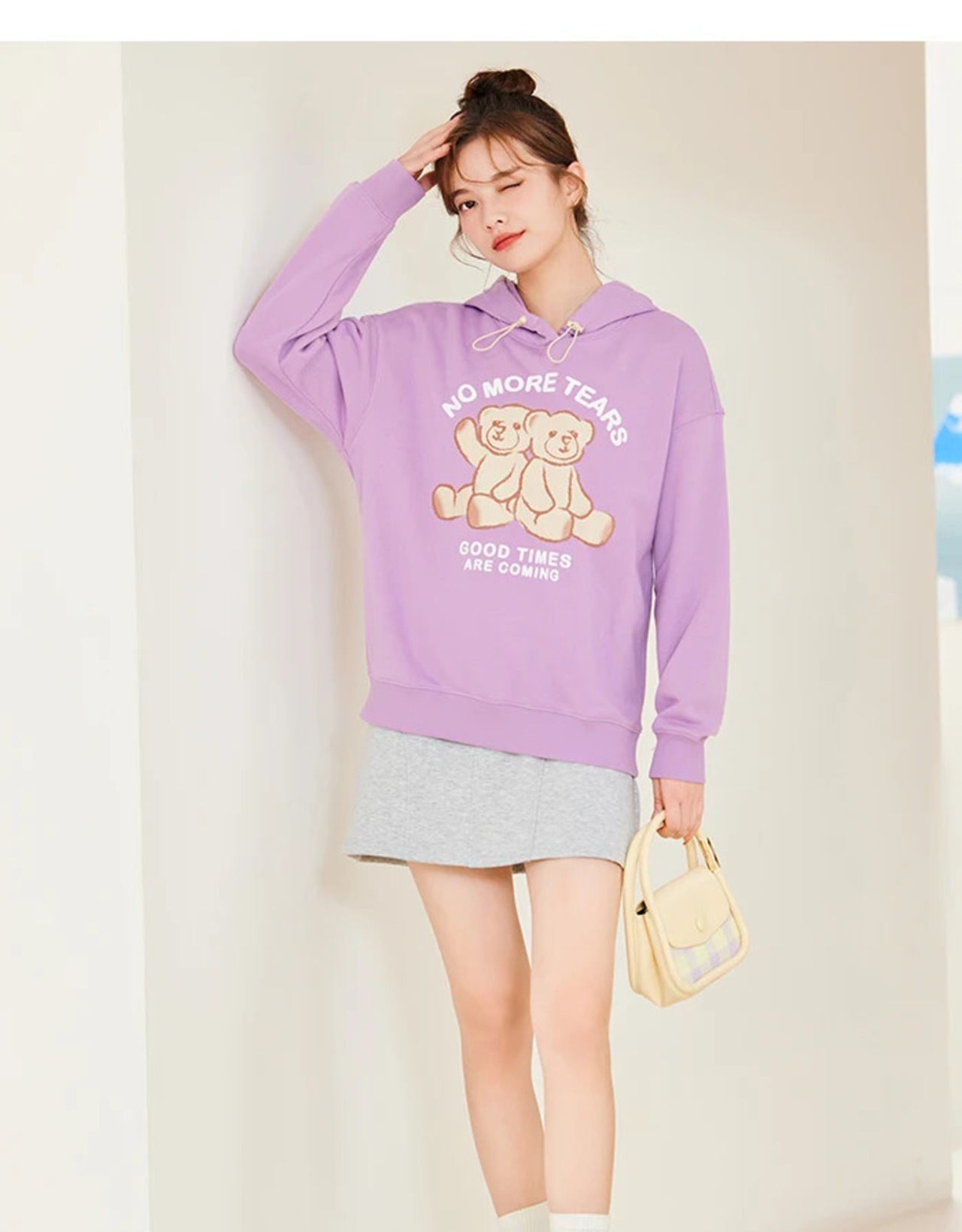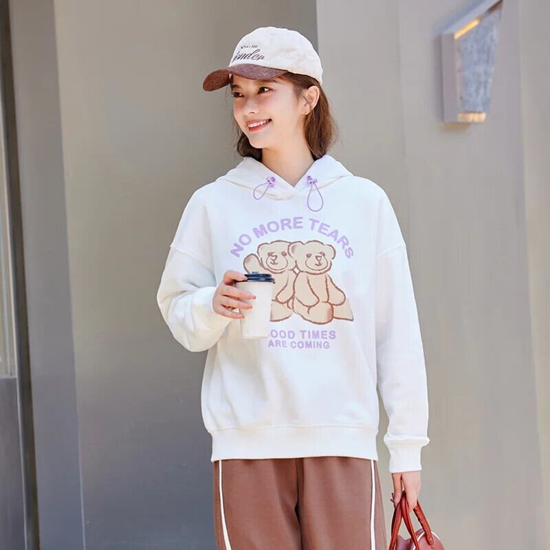 送料無料 Semir トレーナー女性クマ印刷フリースフード付き 2023 冬ルーズプリント気質プルオーバー ウィンター 冬物 AE1212777788692395320