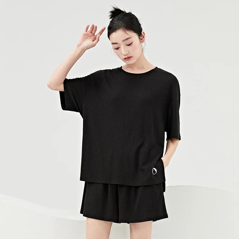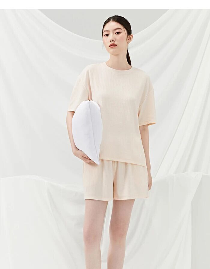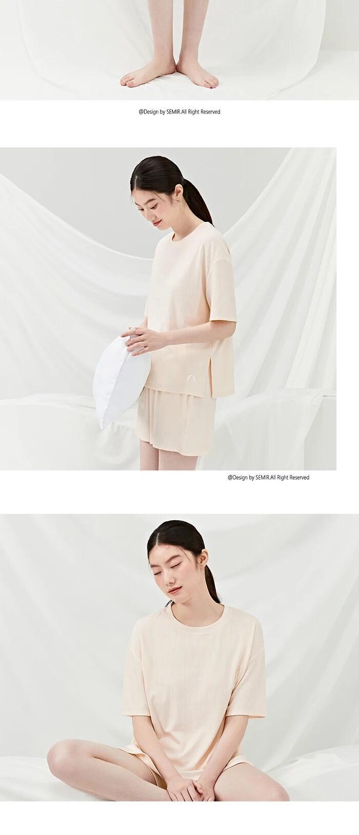 送料無料 Semir パジャマ女性夏ルーズ半袖 T シャツとショーツ Comtable シンプルなリビング スーツ サマー 夏物 ブルマー Tシャツ AE1212777730470272138
