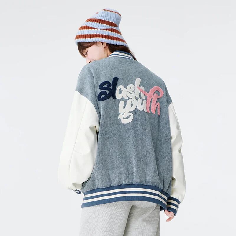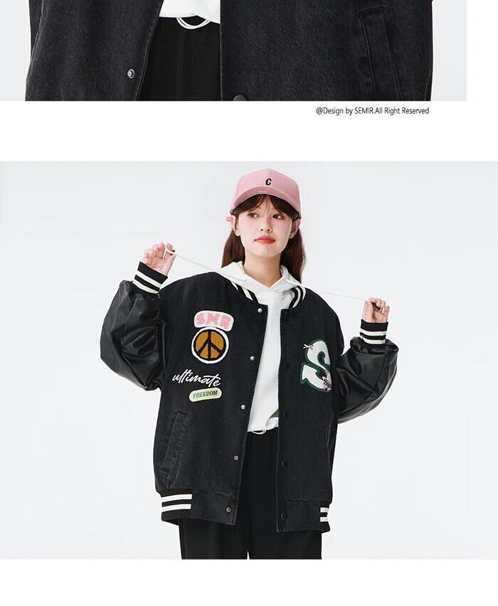 送料無料 Semir 女性ジャケットデニムジャケット刺繍文字ルーズ秋カラーコントラストスプライシング野球甘いクールジャケット レッド 大人ガーリー スウィート キュート カジュアル オータム 秋物 AE1212777729558448939