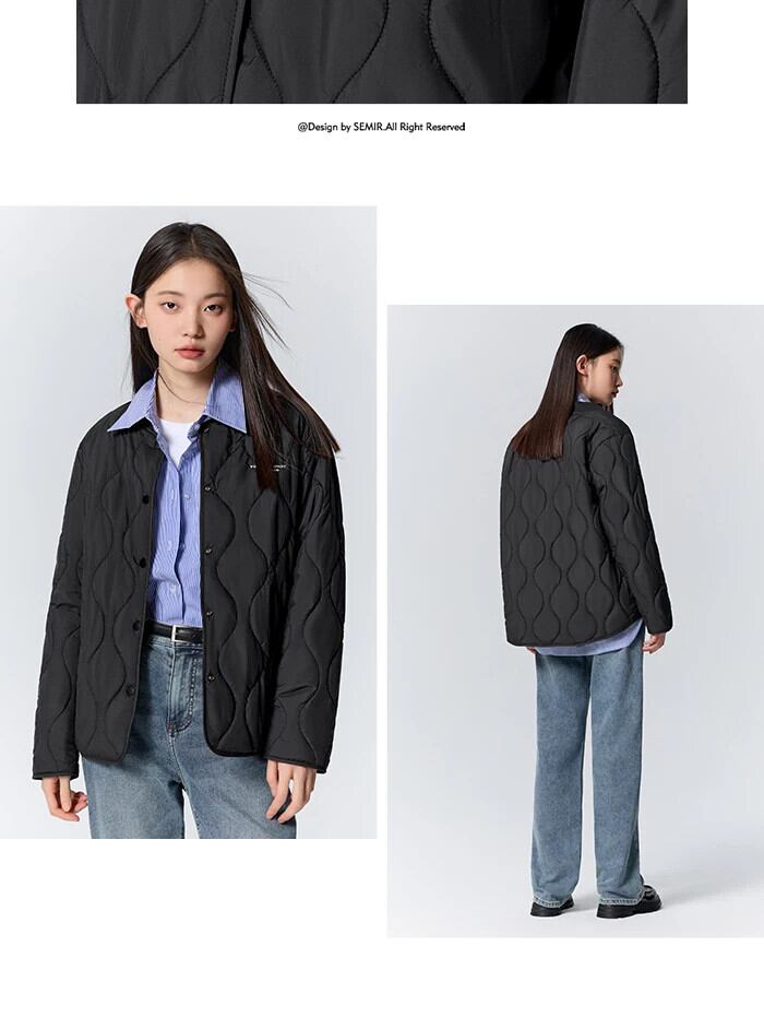 送料無料 Semir 綿コート女性ミッドレングスルーズインナーウェア 2023 冬防水野球襟薄手の綿コート コットン ウィンター 冬物 AE1212777789358471972