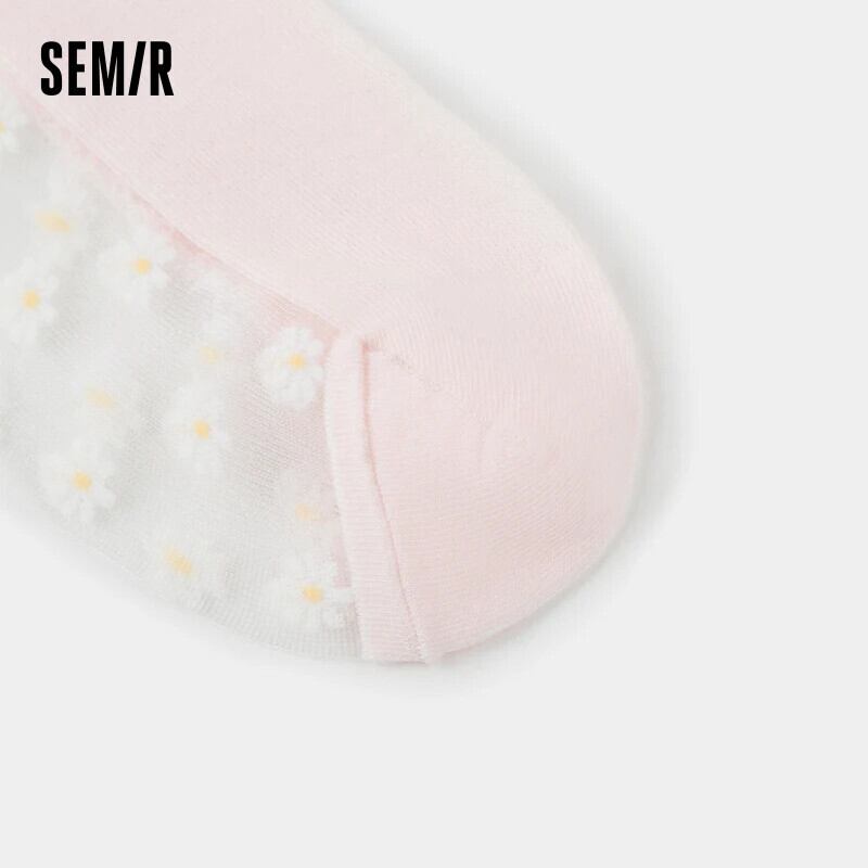 送料無料 Semir 靴下夏薄いデイジー刺繍ショートチューブイン文学芸術女性クリア Gl ソックス レッド サマー 夏物 タイツ ストッキング AE1212777752517070992