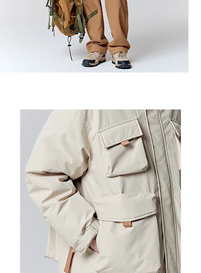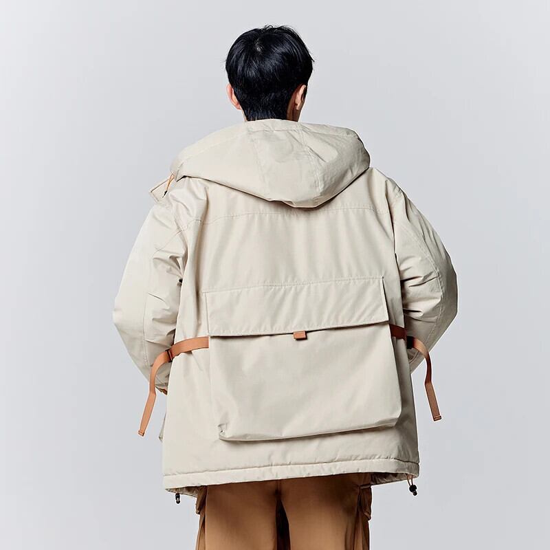 送料無料 Semir ダウンジャケット男性 2023 冬マルチポケット作業着スタイル可能薄型ルーズフード付きジャケット ウィンター 冬物 ポケット多め AE1212777728489105030