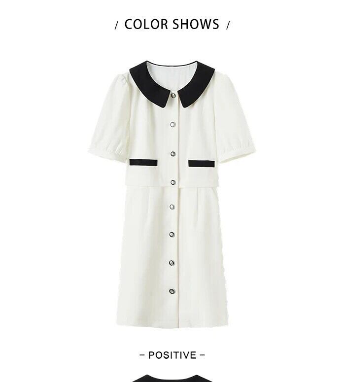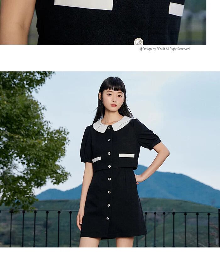 送料無料 Semir ドレス女性コントラストテクスチャ偽二枚 2023 夏バブルスリーブブレストショートドレス小さな香り サマー 夏物 AE121277777551018656