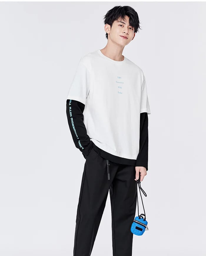 送料無料 Semir 長袖 Tシャツ男性楽しい漫画印刷偽ツーピース 2022 秋ボーイズコットントップ Tシャツコントラストカラー ロング オータム 秋物 AE1212777766619513139