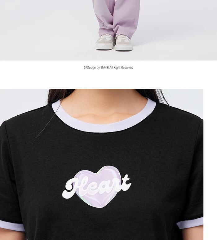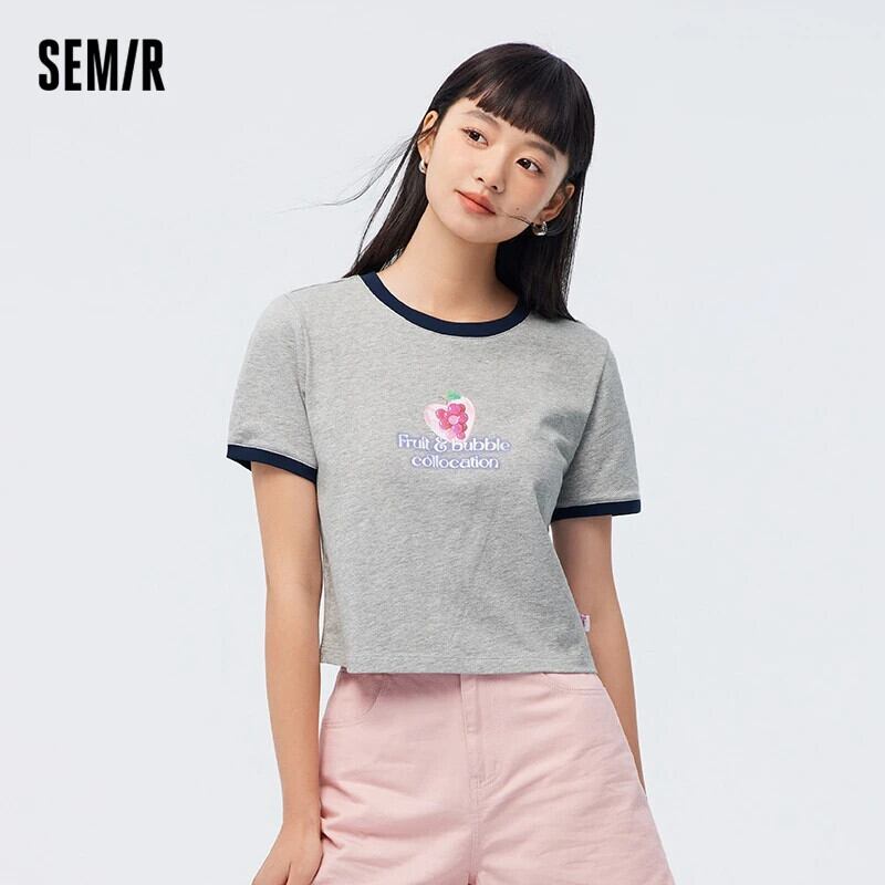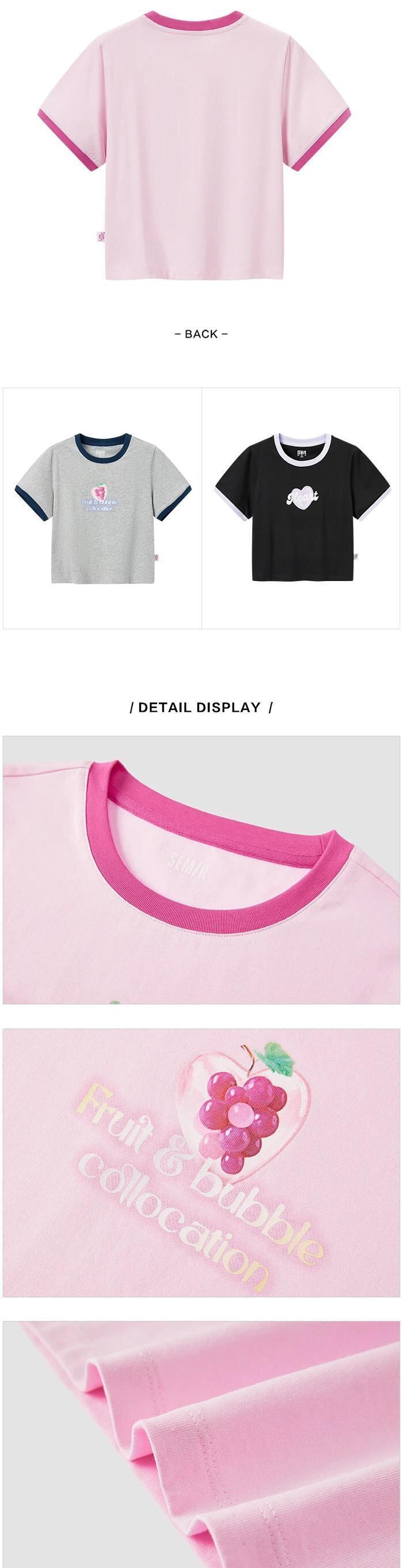 送料無料 Semir 半袖 Tシャツ女性ショートコットン下敷き 2023 夏レトロプリントコントラストプルオーバートレンド ハーフスリーブ サマー 夏物 AE1212777757216607338