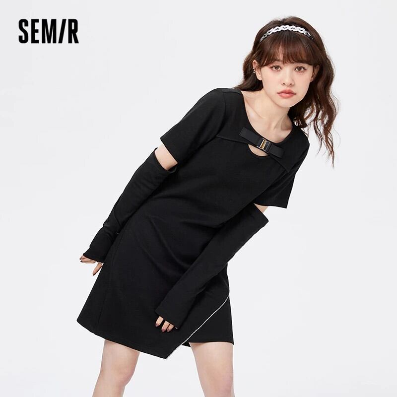 送料無料 Semir 2023 女性ドレス秋不規則なスカート緩い多用途感覚ニッチ中空甘いクールなドレスの女性 大人ガーリー スウィート キュート カジュアル オータム 秋物 AE1212777772922417676