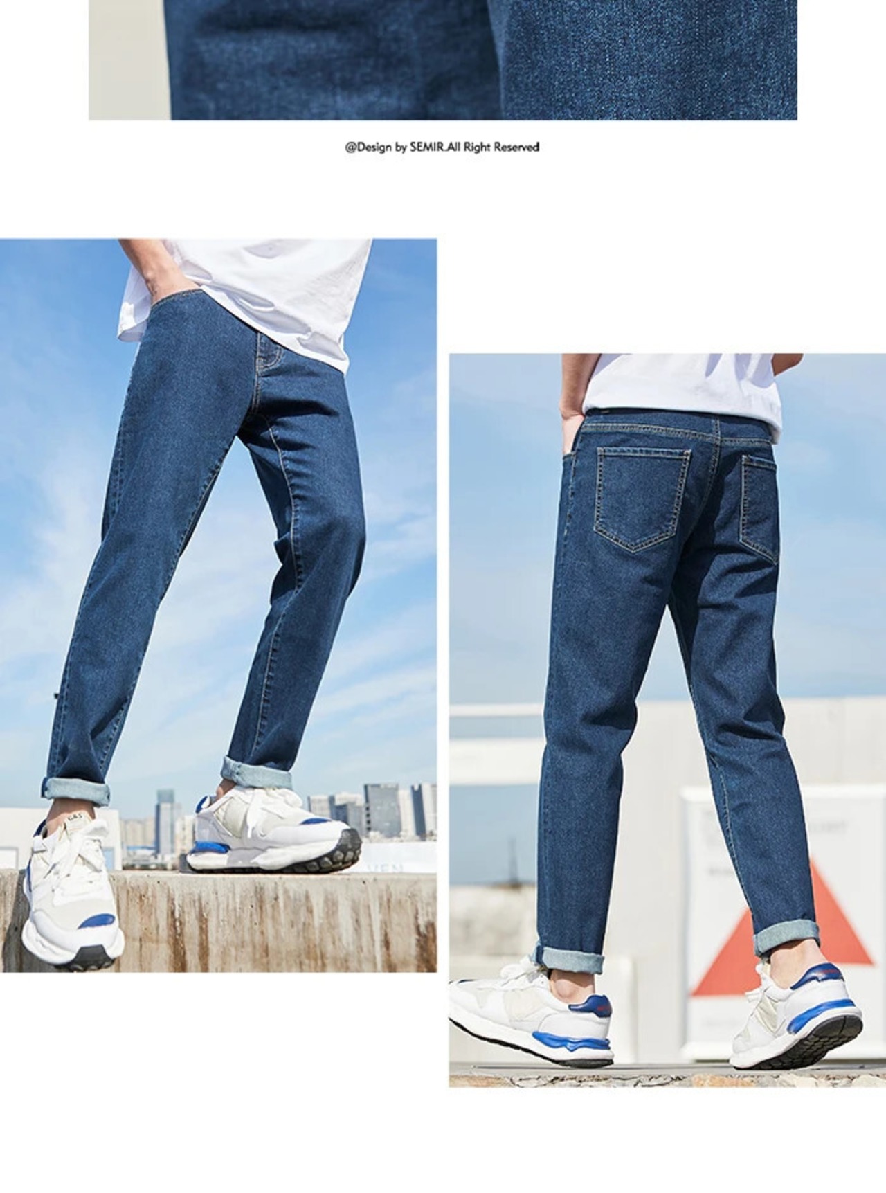 送料無料 SEMIR ジーンズメンズ春スリムフィートマンデニムパンツスタイルトレンディなストレッチパンツブルートレンド スプリング 春物 AE1212777711831411006