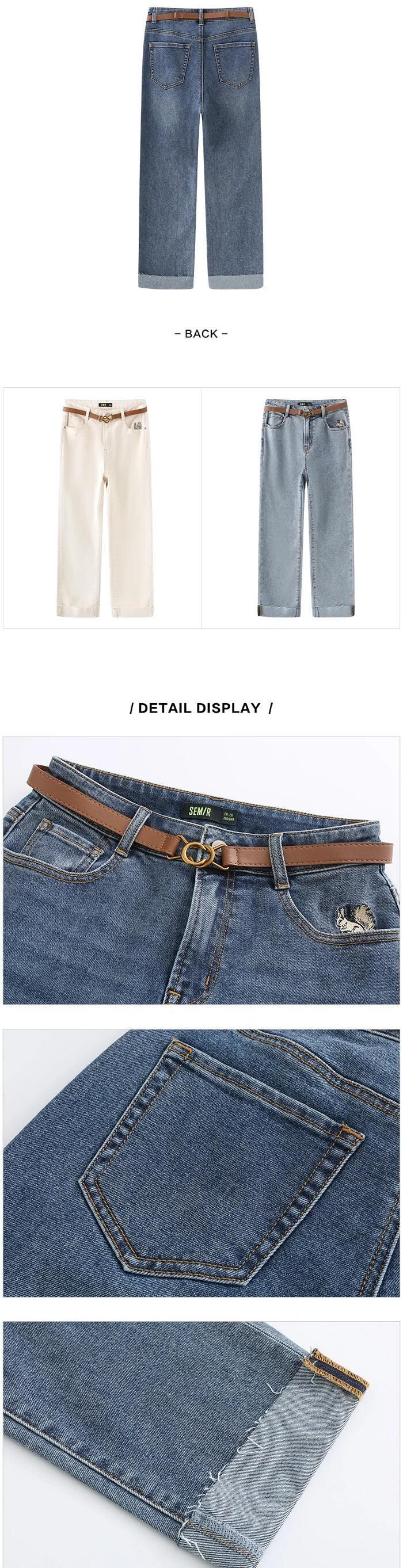 送料無料 Semir 女性ジーンズカーリーエッジローエッジストレートレッグパンツシンプルトレンド秋クロップドパンツレトロオールマッチジーンズレディース オータム 秋物 AE1212777799288467290