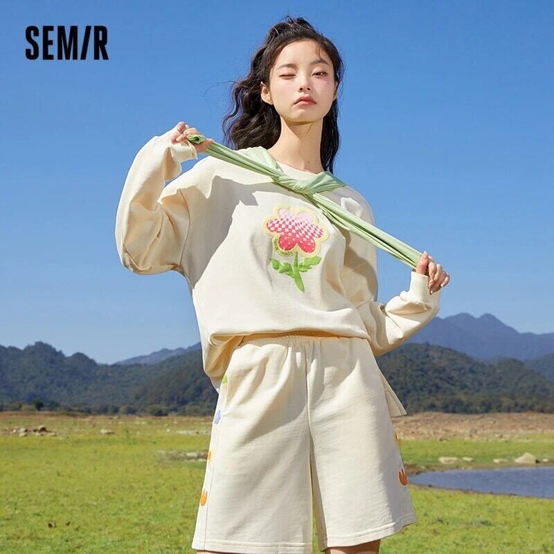 送料無料 Semir Set 女性長袖セーターショーツ 2023 ルーズスポーツ 2 点セット ロング ブルマー AE1212777795746902253