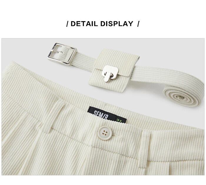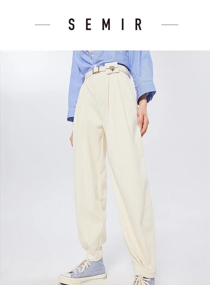 送料無料 Semir 2023 女性パンツ秋小さな基本テーパードレッグパンツコーデュロイウエストズボンショー高さパンツ女性 レッド オータム 秋物 AE1212777772475886159