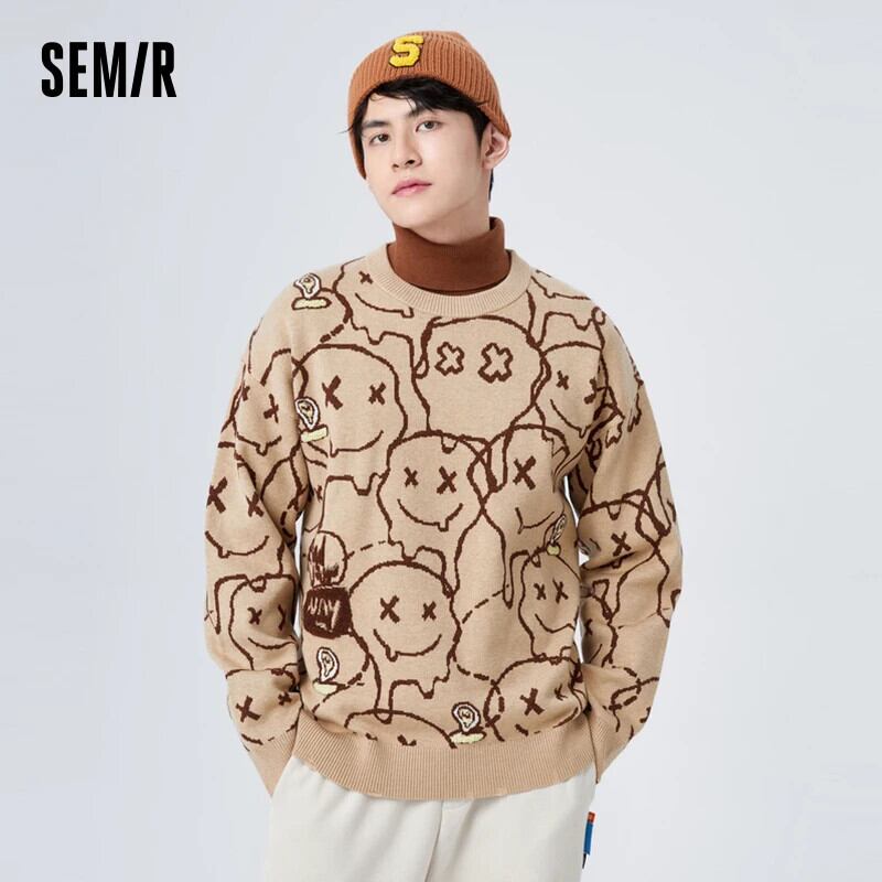 送料無料 Semir プルオーバーセーターメンズ冬の楽しいフルバージョンコントラストジャカードデイリー Comtable ルーズセーター ウィンター 冬物 AE1212777718888887446