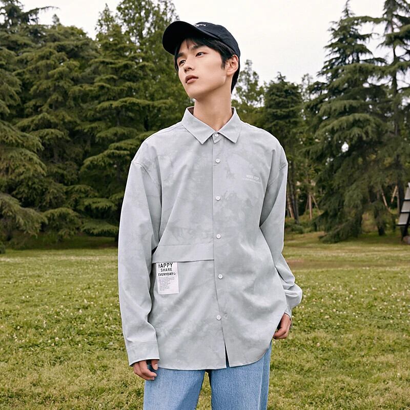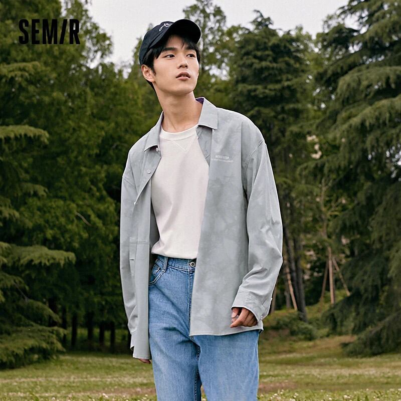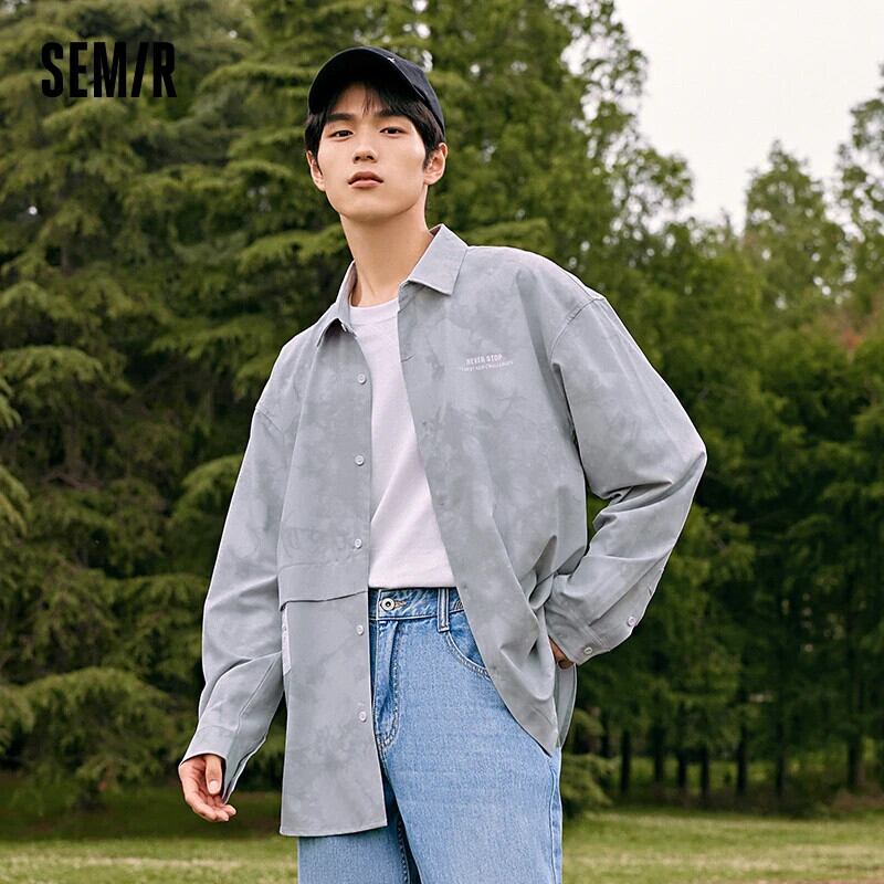 送料無料 Semir 男性シャツ長袖シャツ秋咲くトップ弾性 Comtable 緩いトレンディな秋のシャツ男性 ロング エラスティック 伸縮 オータム 秋物 AE1212777784550698287