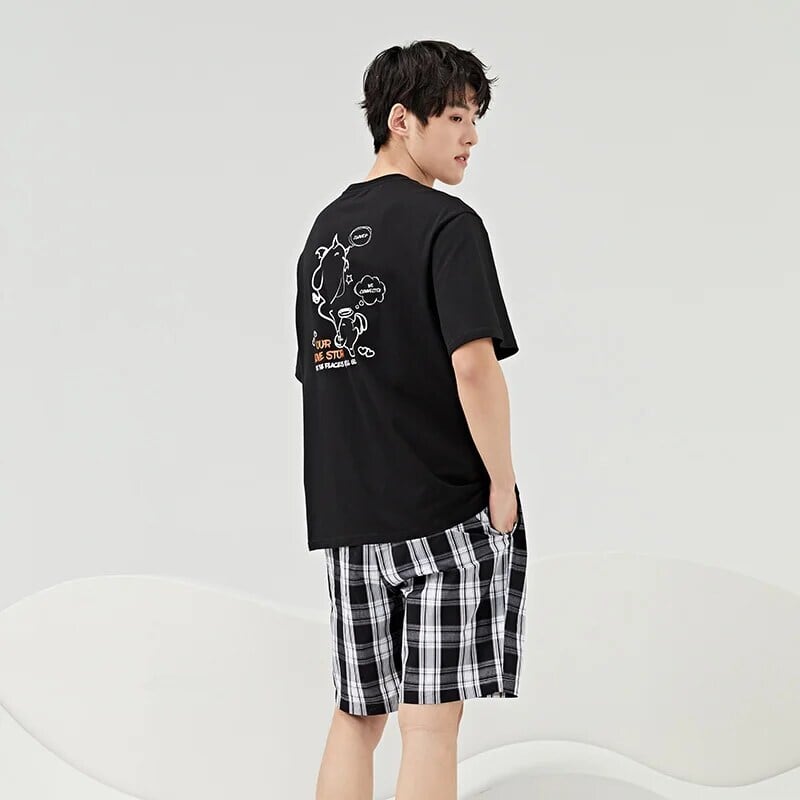 送料無料 Semir パジャマセット男性綿秋カップルセット男半袖ショーツホームウェア秋 ショート コットン ハーフスリーブ オータム 秋物 ブルマー AE1212777758570052058