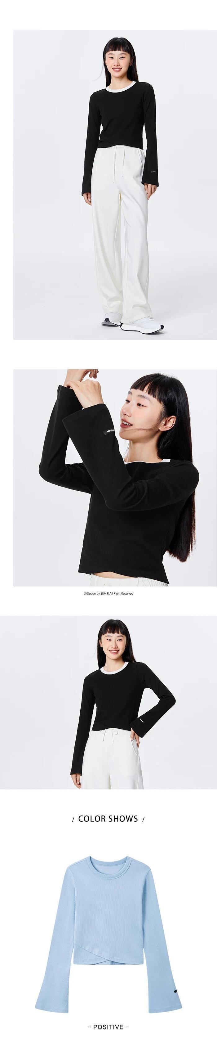 送料無料 Semir 女性 Tシャツ長袖トランペットスリーブ Comtable 底シャツスリム屋外で着用可能 Tシャツ女性 ロング AE1212777736895357585
