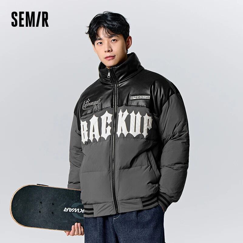 送料無料 Semir ダウンジャケット男性 2023 冬ステッチ文字刺繍暖かいスタンドカラージャケット ウィンター 冬物 AE1212777794766854082