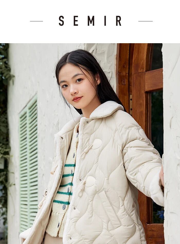 送料無料 Semir コットンコート女性イミテーションウサギの毛皮の襟ルース優しい甘い 2023 冬ホーンボタンコットンジャケット 大人ガーリー スウィート キュート カジュアル ウィンター 冬物 AE1212777768132414276