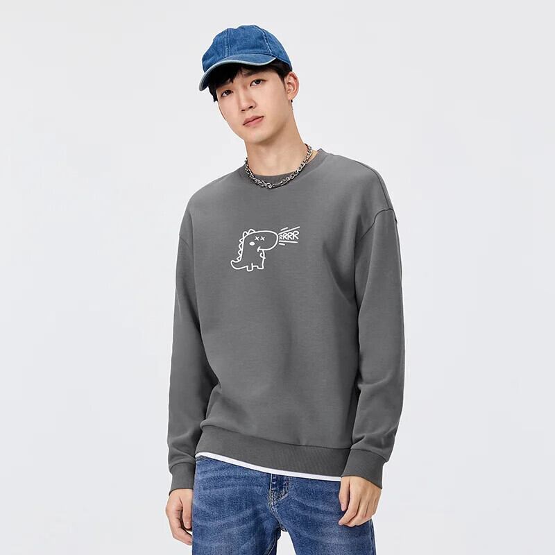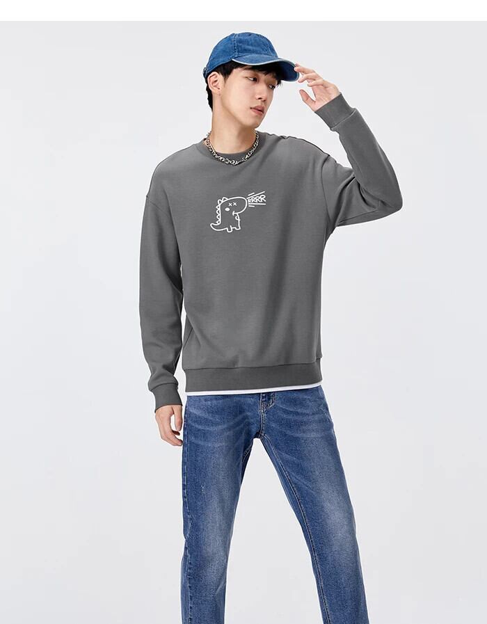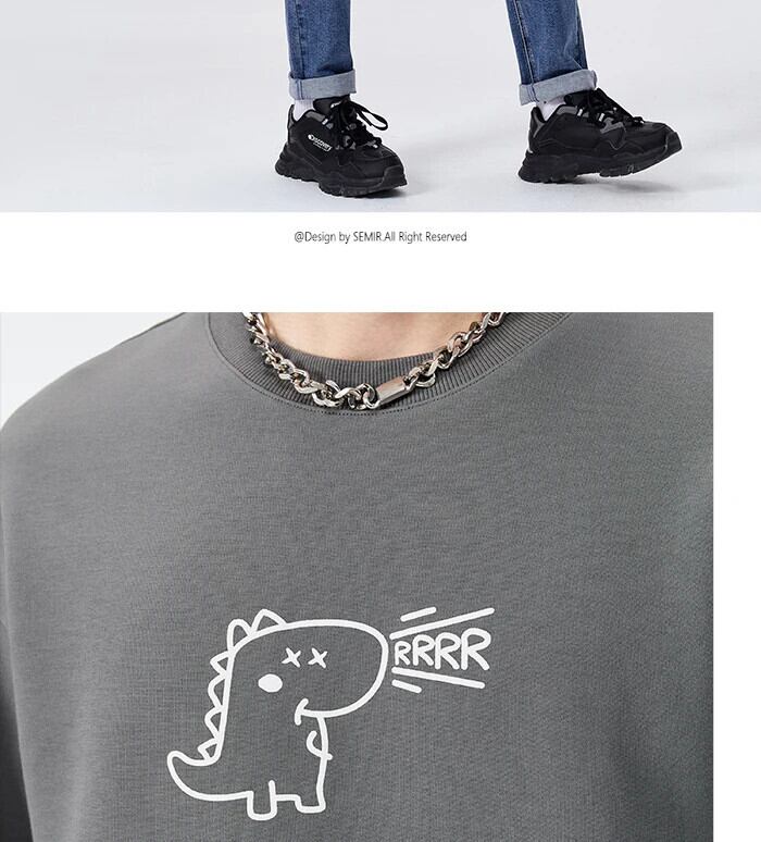 送料無料 SEMIR トレーナー男性偽ツーピーススプライシング 2021 秋ルーズグレーパーカー恐竜パターン服 オータム 秋物 AE1212777773372467680