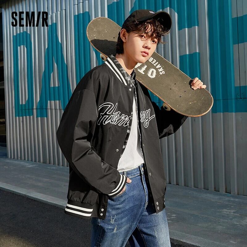 送料無料 Semir ジャケット男性野球襟コントラストカラー刺繍 2022 春ルーズでハンサムなジャケット スプリング 春物 AE1212777796708242156