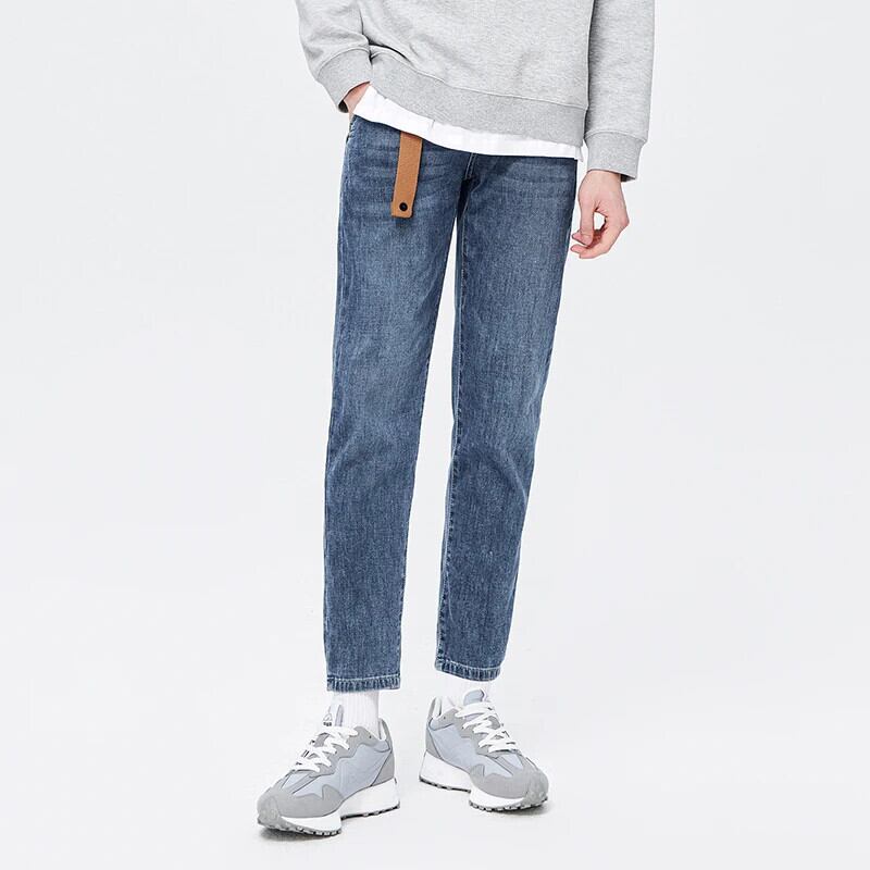 送料無料 Semir 男性ジーンズ秋アメリカンスタイルレトロベルトトレンディフィット小足通勤ズボン男性 オータム 秋物 ハーネス AE1212777757457218109
