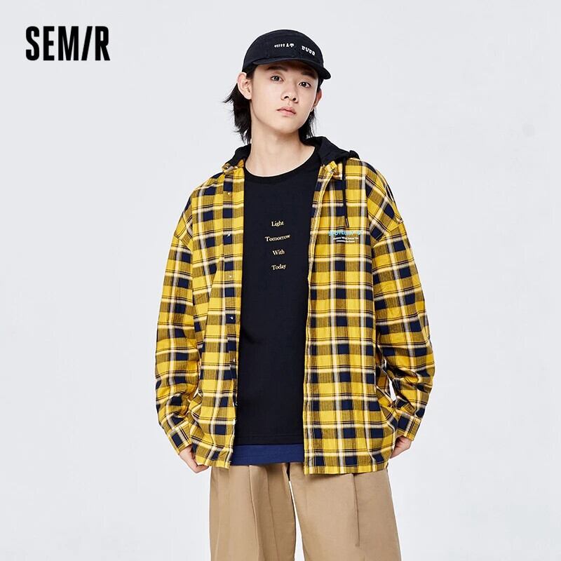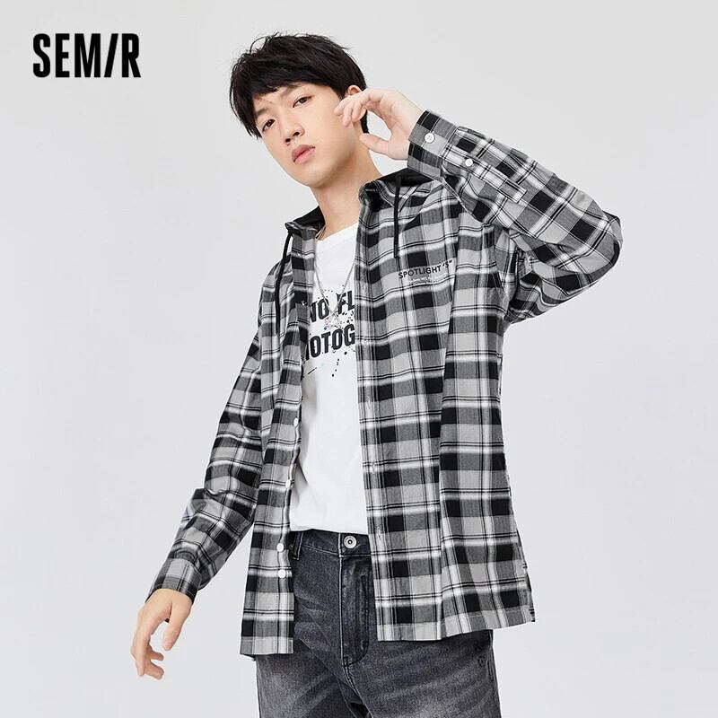 送料無料 Semir 長袖シャツメンズフード付きシャツ 2022 ボーイズ秋ルーズチェック柄トップオールマッチ ロング オータム 秋物 AE1212777780378026333