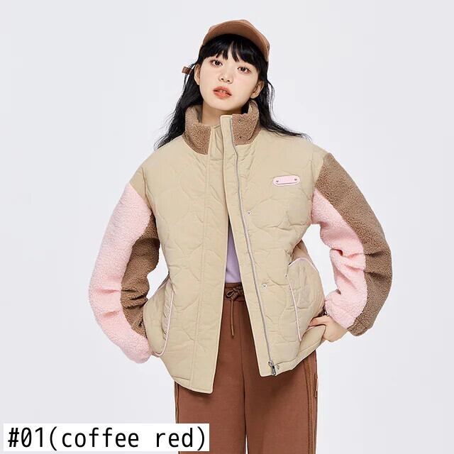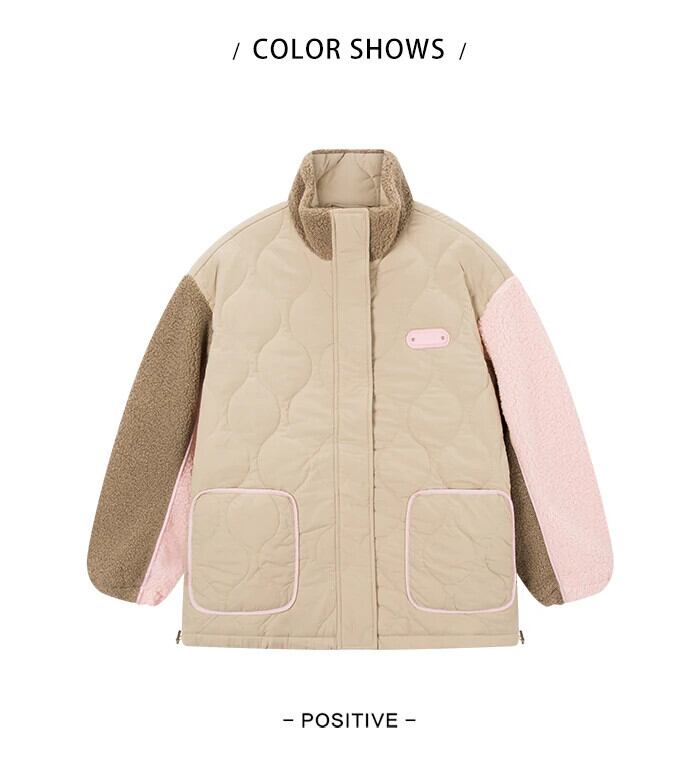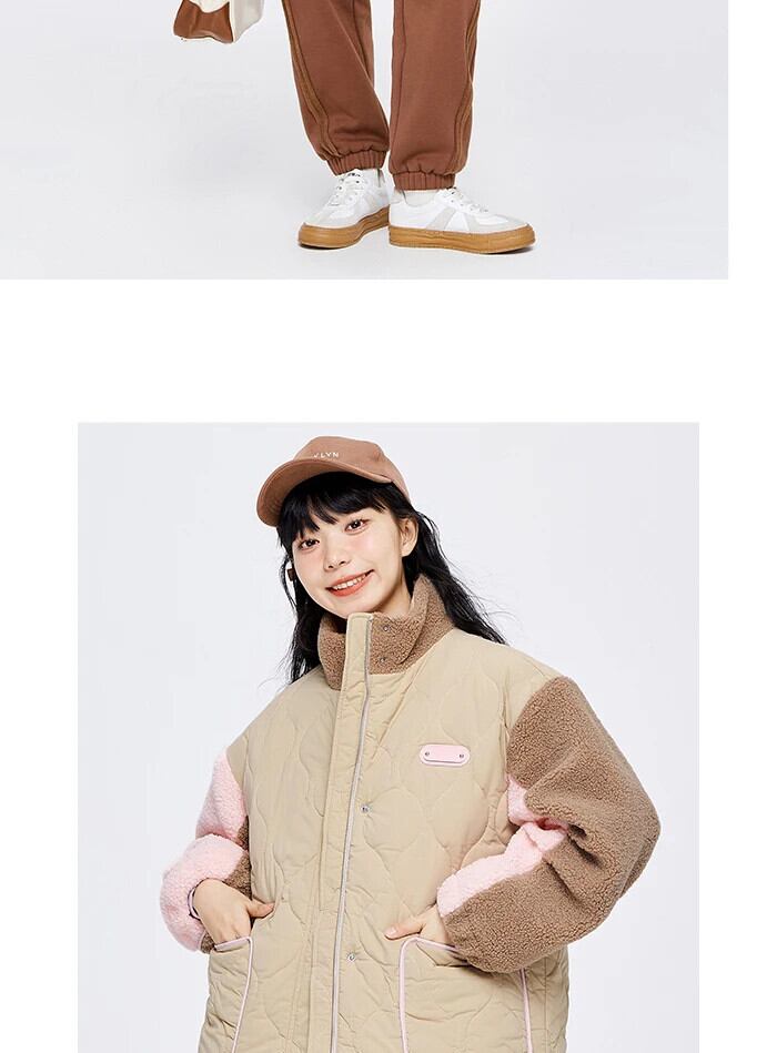 送料無料 Semir コットンコート女性ミッドレングスプライシング模造ラムウール 2023 冬ルーズカラーブロック厚手コットンコート ウィンター 冬物 AE1212777751003981542